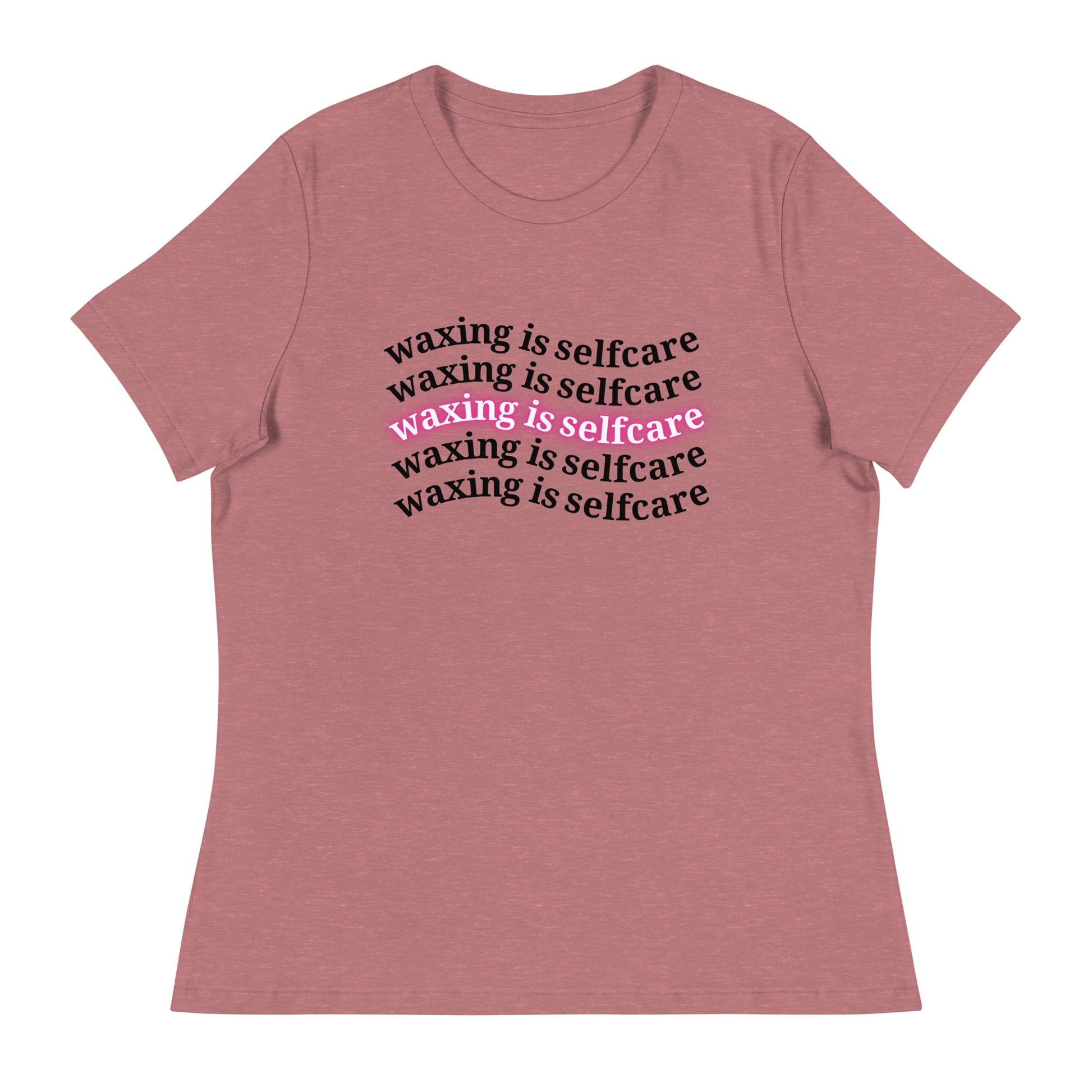 "Waxing is self care" women's T-shirt is made from super-soft fabric that combines comfort with style and flare. Get ready to stand out and catch attention with this fun T-shirt featuring a playful design. Perfect gift or everyday wear for waxers, estheticians.